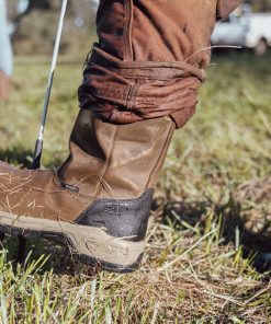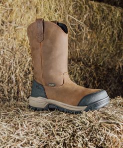 Protects like a work boot, fits like a sneaker. This waterproof pull-on style features a tough leather upper, energy-returning cushioning, and soft toe.