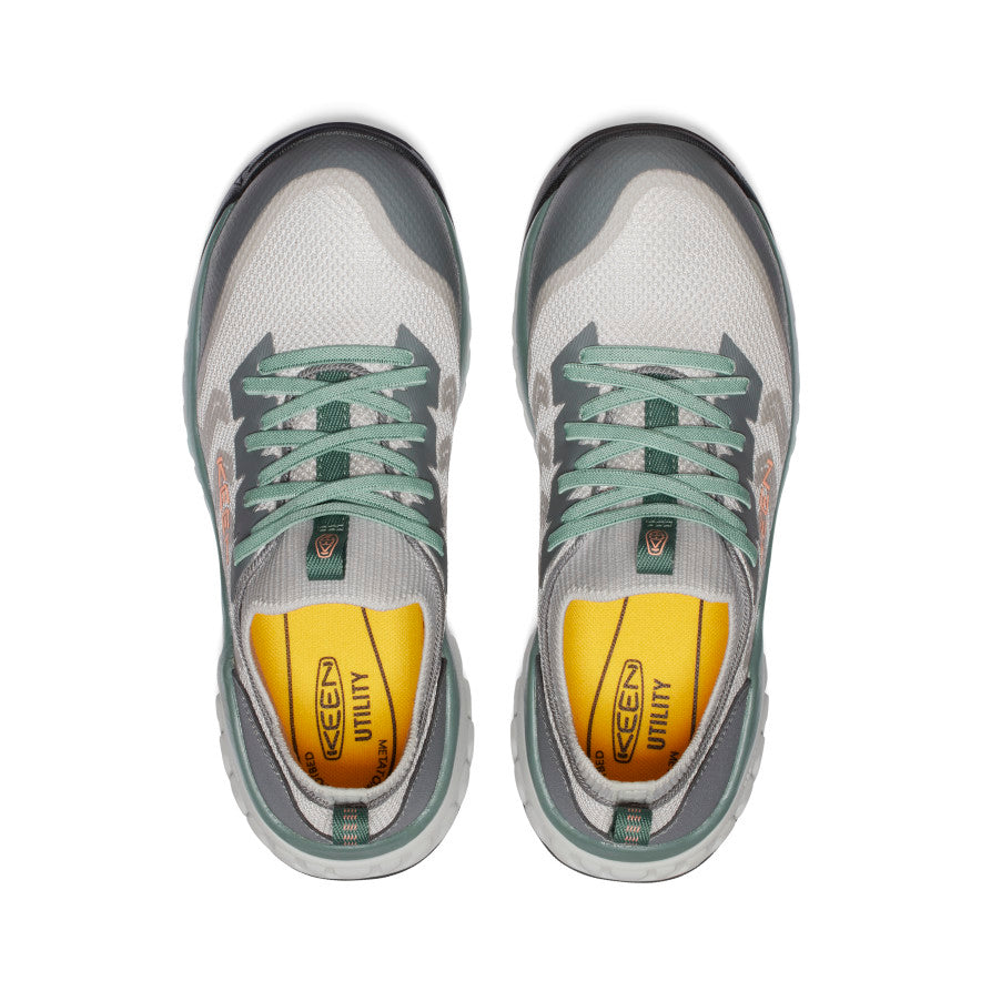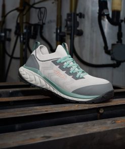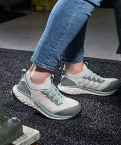 Designed for constant movement and long hours on your feet, KEEN’s Women’s Arvada Shift Slip-On Work Sneaker in Grey/Green offers both safety and comfort.